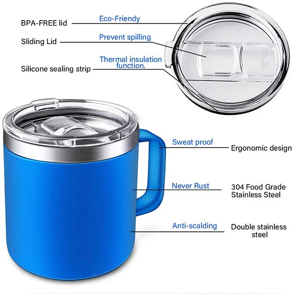 - Opremljen s prozornim plastičnim pokrovom z luknjami za slamice in drsnim pokrovom, lahko učinkovito zaklene kavo, čaj ali druge pijače, v katerih lahko kadar koli uživate.
