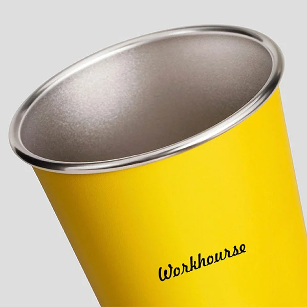 Velikost je 8*15 cm. Ohišje skodelice ima poševno zasnovo, kar omogoča, da se ena skodelica prilega v drugo in s tem prihrani prostor.
