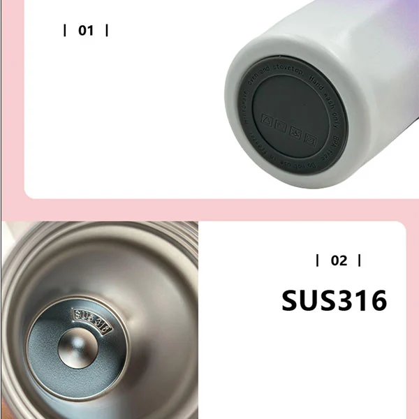 Je vakuumska izolirana steklenica iz nerjavečega jekla s slamo, material je izdelan iz 316 nerjavečega jekla (notranjega dela) in 201 nerjavečega jekla (zunanja stena), zmogljivost je 500 ml.