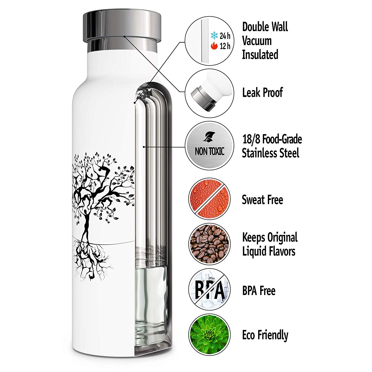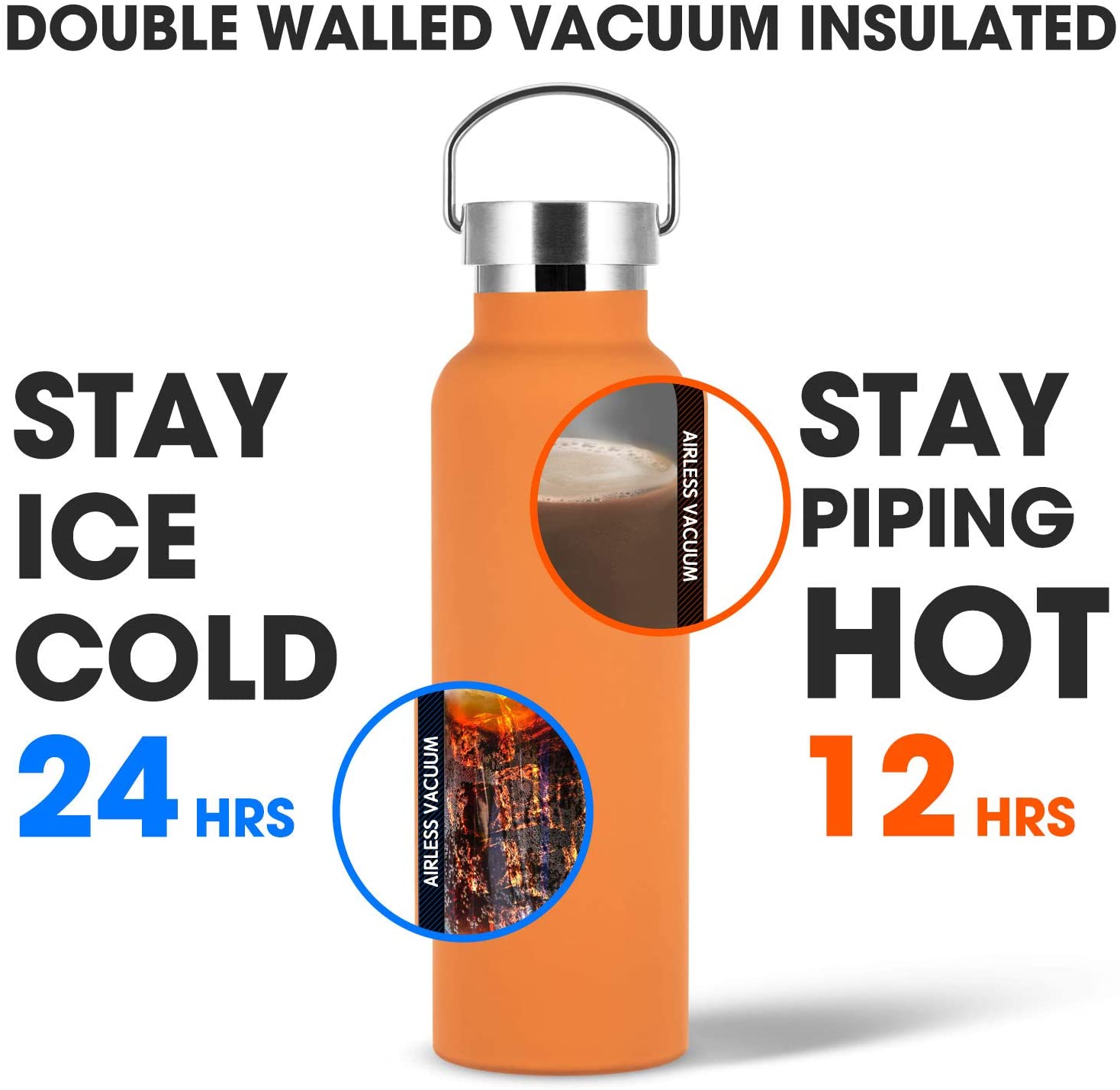 - Izolirano v vakuumu: Vrhunsko dvojno obzivno vakuumsko izolirano steklenico iz nerjavečega jekla ohranja vodo hladno in vroče do 24 ur, sploh se ne "znoji"!