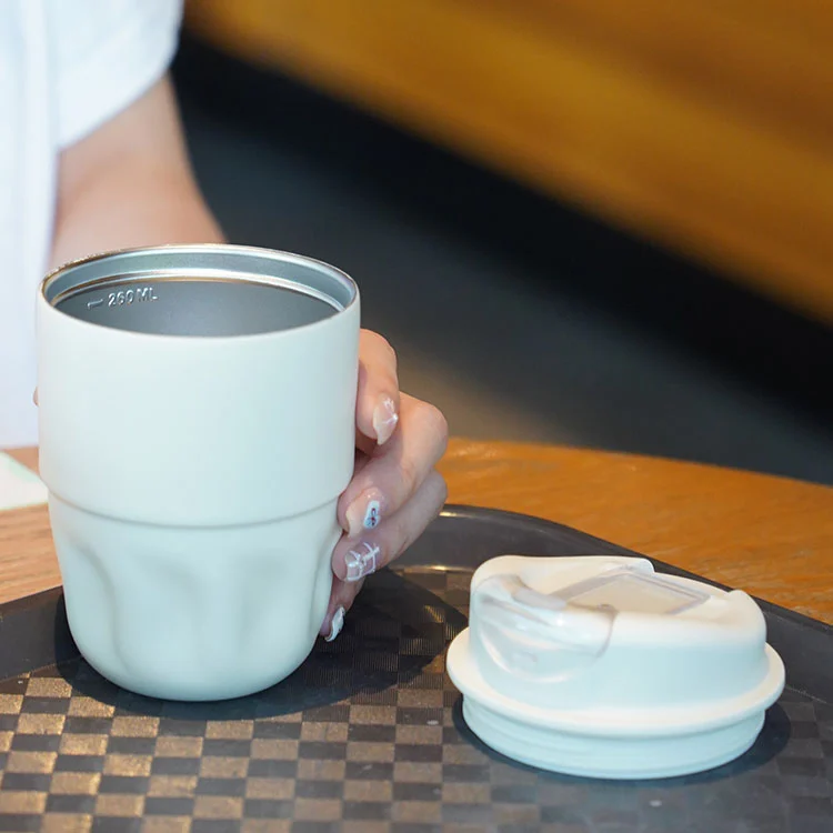 Potovalni vrč se ponaša z trendovskim videzom z oblikovanjem lupine v obliki cvetnega lista, ki vodi modni trend. Narejena je iz 18/8 nerjavečega jekla, ki absolutno zagotavlja varnost hrane. Gladke črte integrirajo pokrov in ohišje skodelice brezhibno. PP pokrov je sestavljen iz novih materialov brez recikliranih materialov, prav tako izpolnjuje standarde varnosti hrane. Preprost dizajn Flip-Open ponuja odličen občutek rok in je primeren za enoročno delovanje. Zaradi velikega premera odprtine skodelice je zelo priročno dodajanje ledenih kock. Silikonski obroč 360 ° ne zagotavlja puščanja v vse smeri. Na voljo je v dveh zmogljivostih, 260 ml in 450 ml, da zadovolji različne potrebe po pitju.