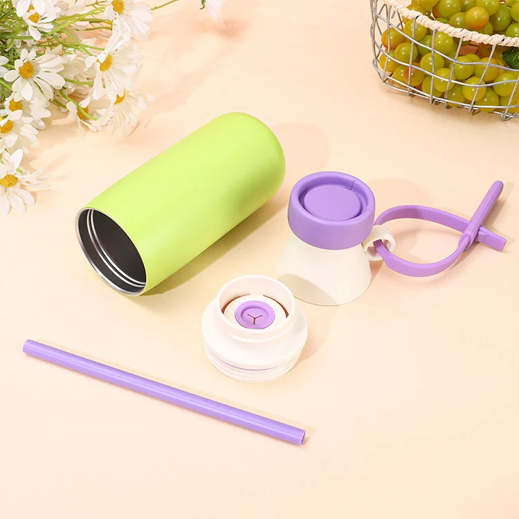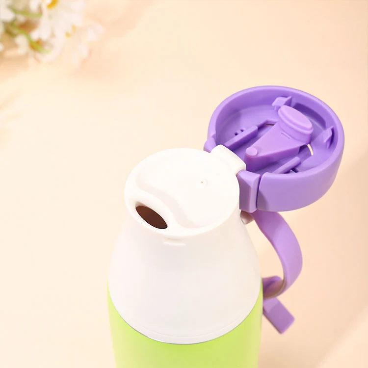Vakuumsko izolirana steklenička iz nerjavečega jekla 304 spada med stekleničke za mleko z dopaminom, s krožnim pokrovom, ki ga je mogoče zlahka odpreti s potegom in zakleniti s samo pritiskom, da preprečite nenamerno odpiranje pokrova steklenice.
